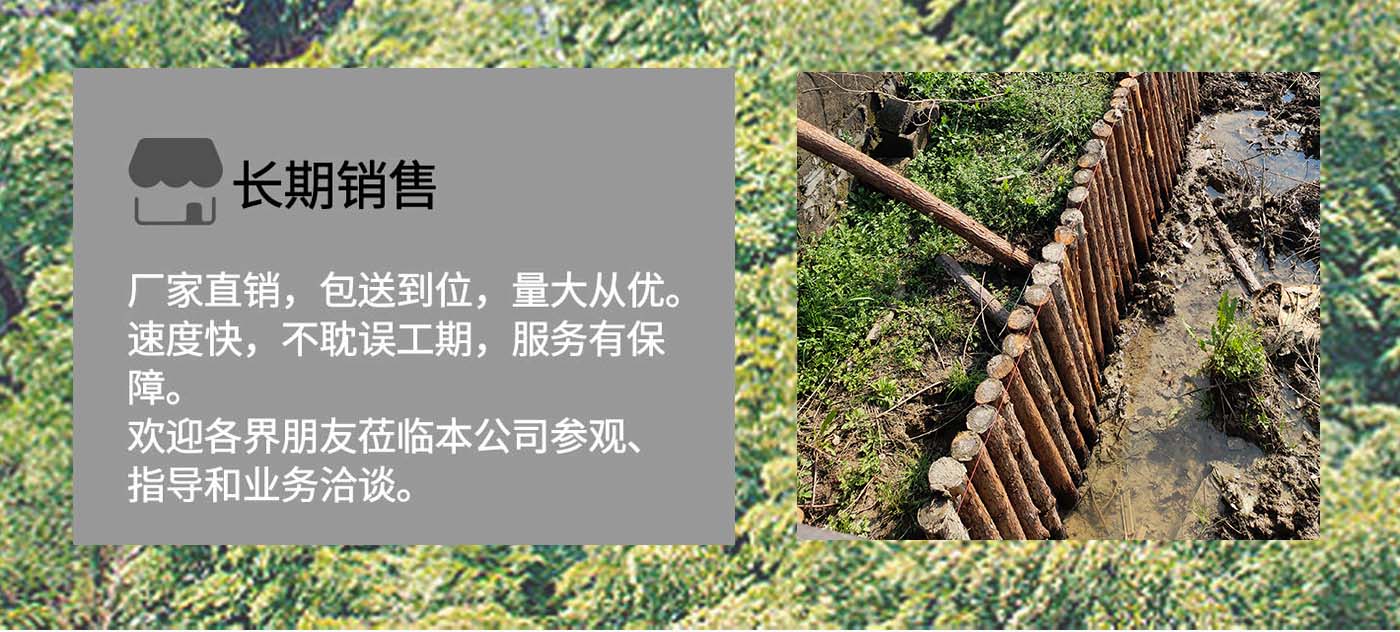 南京市云森木業有限公司位于南京市高淳區。是一家生產加工,線上銷售為一體的現代化企業。擁有完善、科學的質量管理體系及工作團隊。 公司主營松木樁,杉木樁,打樁木,河道木樁,駁岸木樁,防汛木樁,景觀木樁、園林綠化支撐桿等,也可支持方料,木板等木材定制加工產品,所選原材料均為黃山中心林區,樹齡均在三十年左右。質地緊密,樹形優美。 本公司貨源充足,供貨能力強,地處高淳,交通方便利,江浙滬皖送貨上門,當天可達。本著“誠信為本,客戶至上”的經營宗旨,真誠希望與您合作。 歡迎各位客戶前來咨詢,定以優良品質和價格回饋廣大客戶。